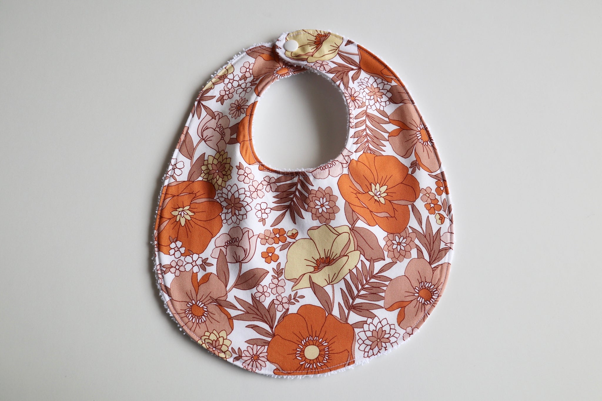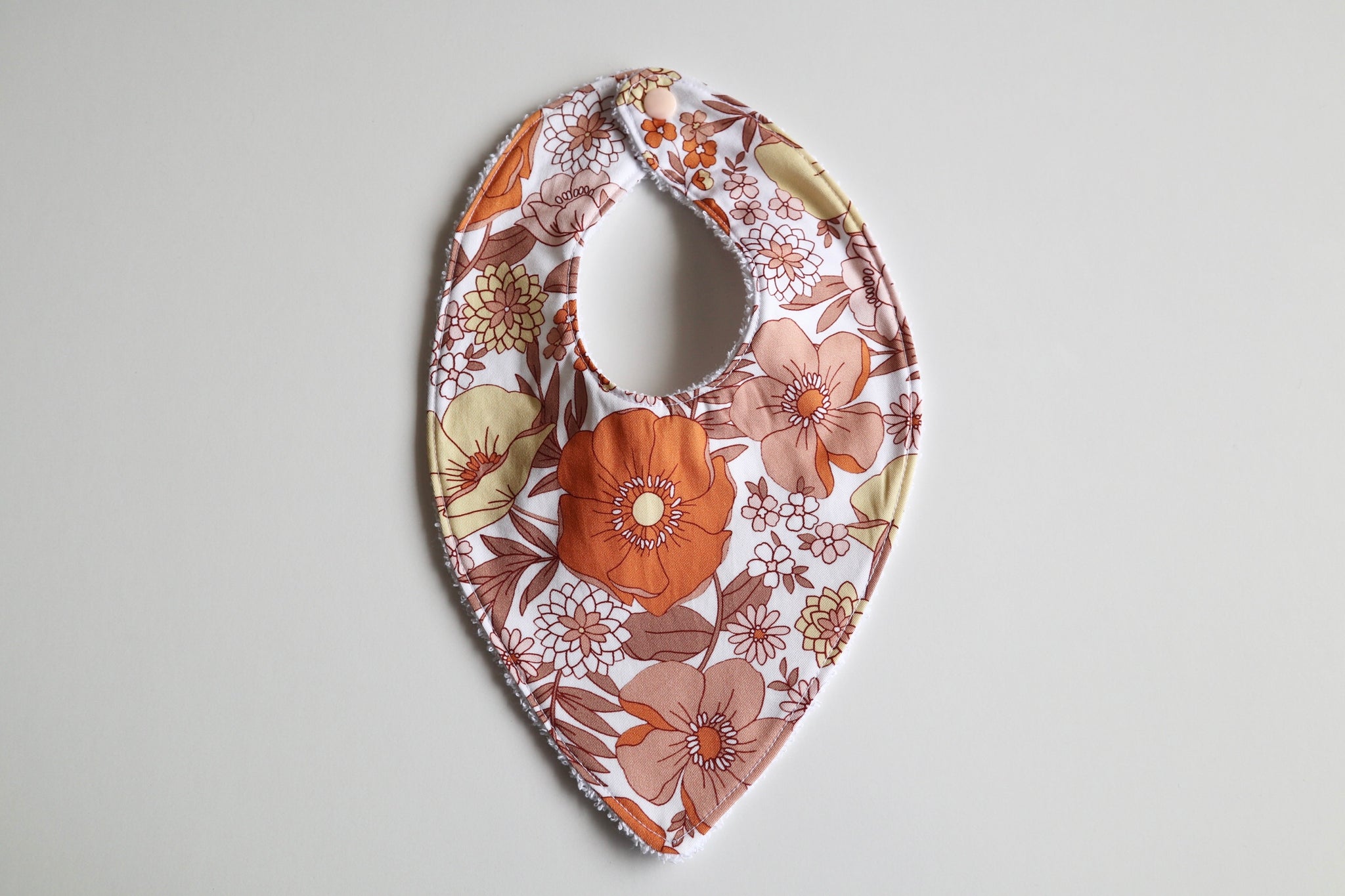Our handmade bibs have an absorbent towel backing and a soft, 100% cotton, stylish print fabric for the front. Great for absorbing up all your babies dribble.
