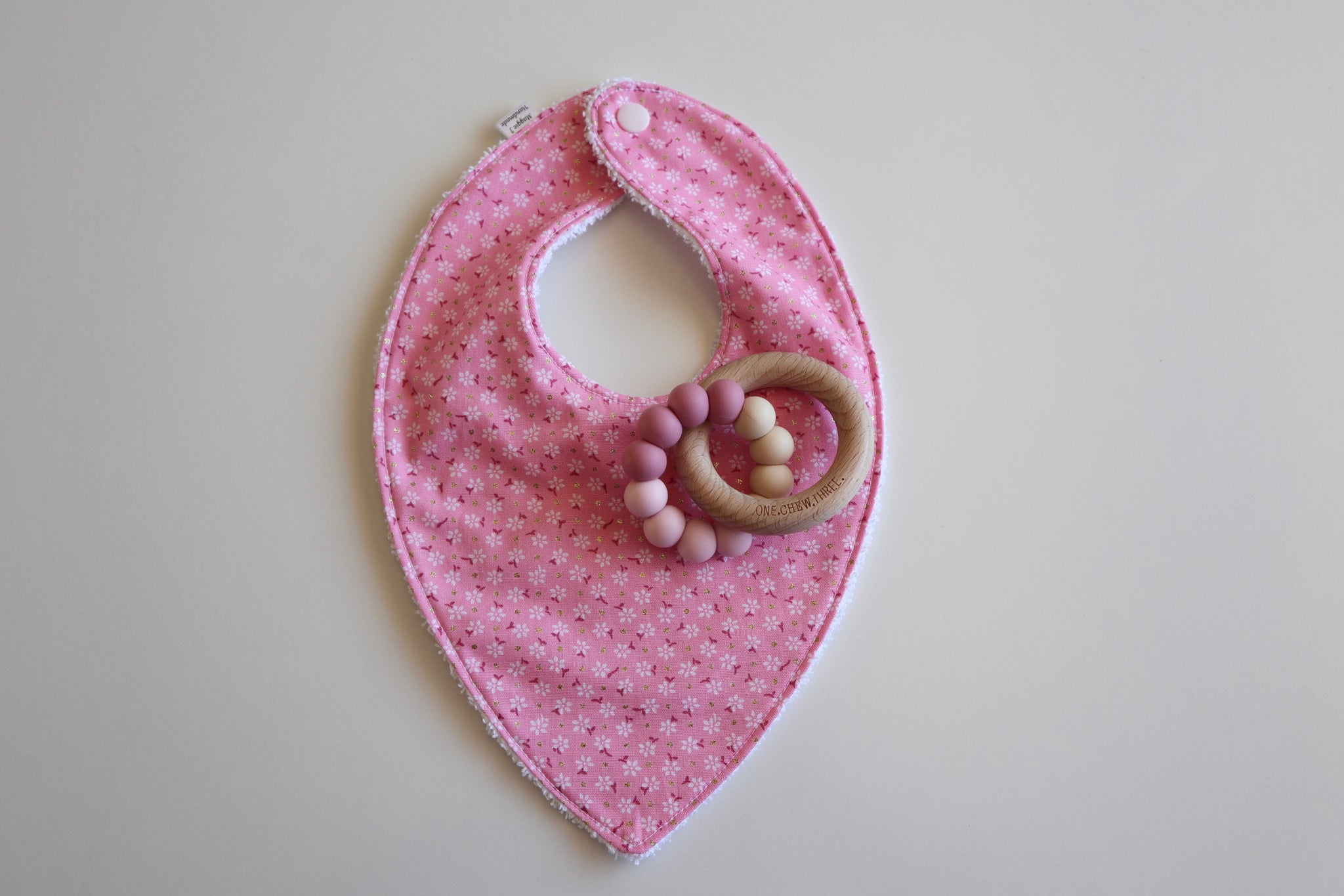 Our handmade bibs have an absorbent towel backing and a soft, 100% cotton, stylish print fabric for the front. Great for absorbing up all your babies dribble.