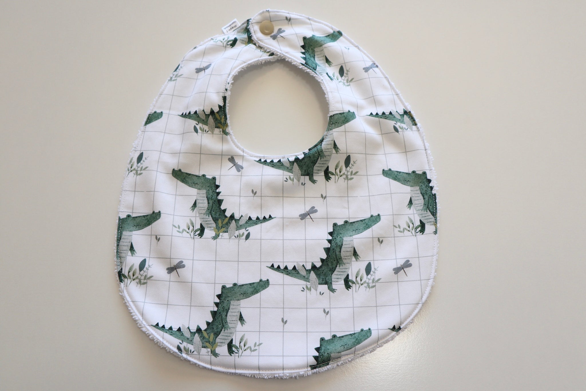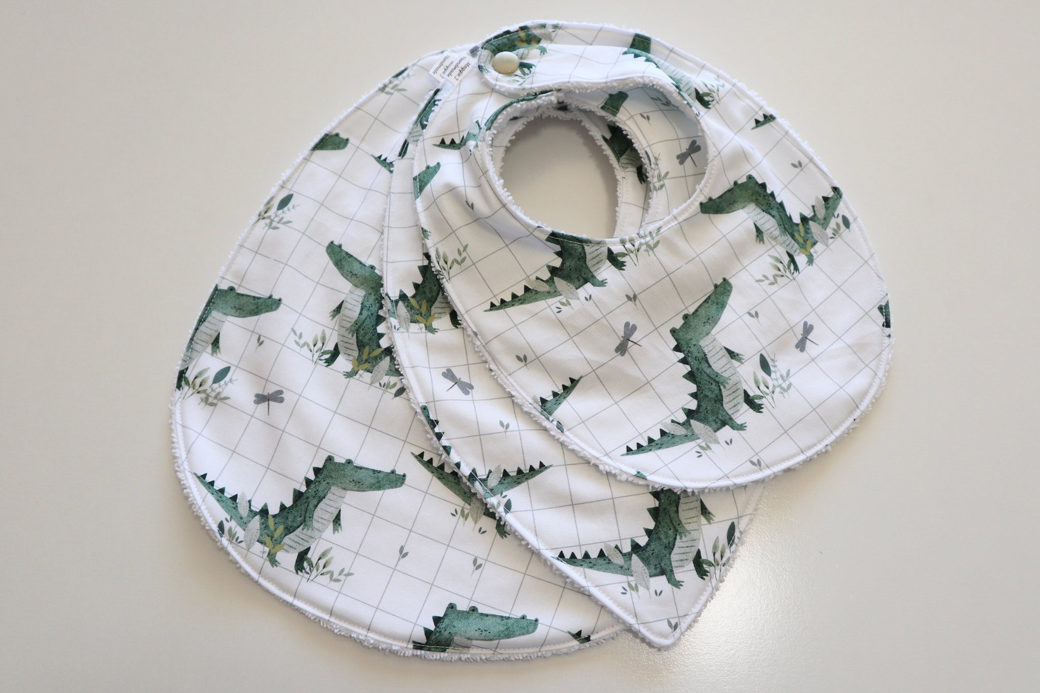 Our handmade bibs have an absorbent towel backing and a soft, 100% cotton, stylish print fabric for the front. Great for absorbing up all your babies dribble.