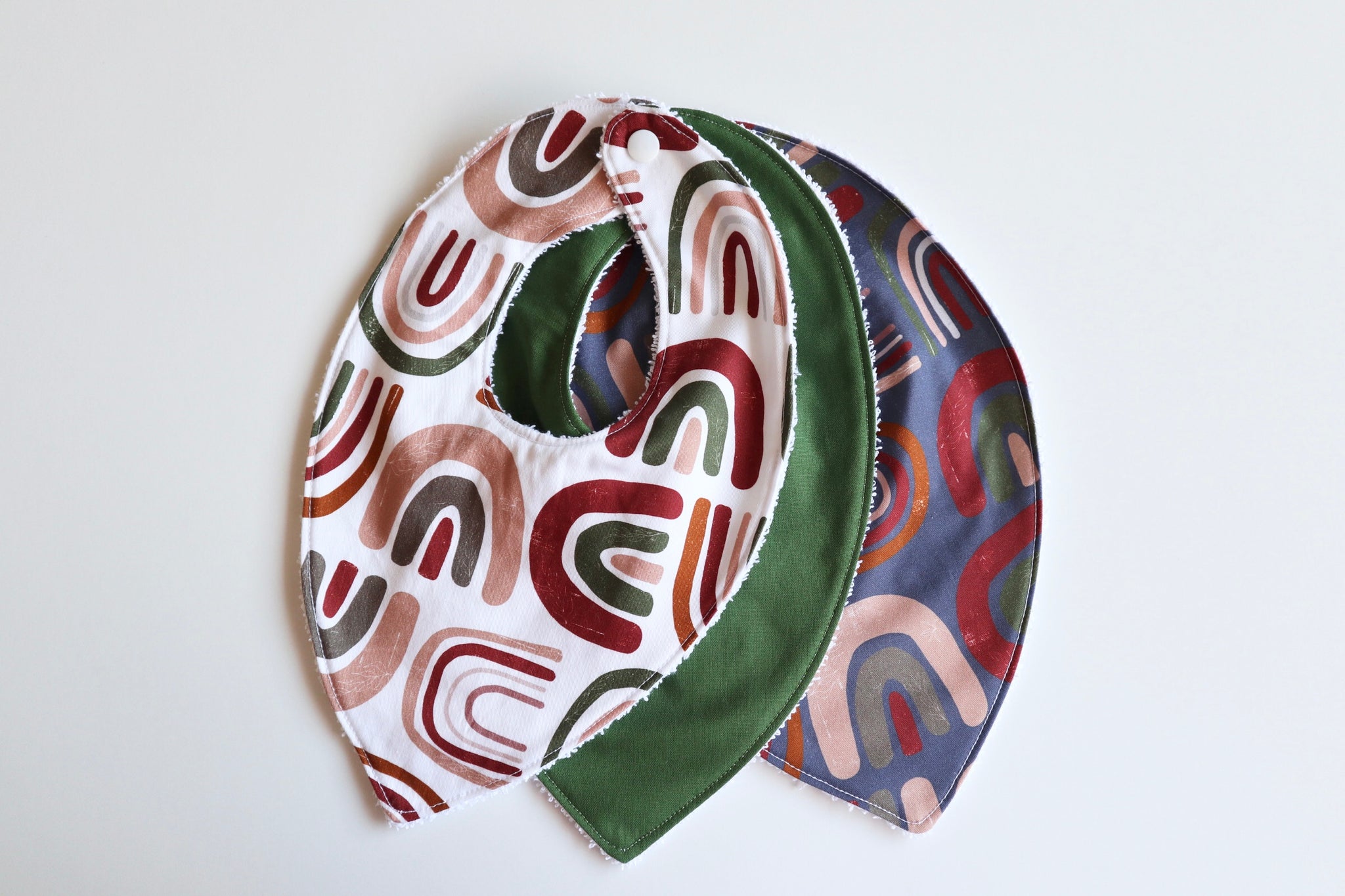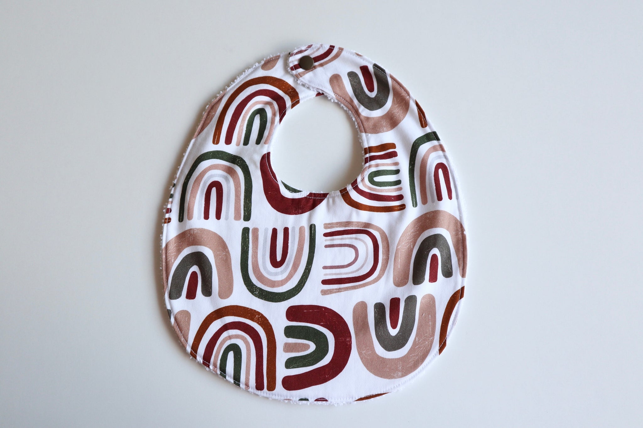 Our handmade bibs have an absorbent towel backing and a soft, 100% cotton, stylish print fabric for the front. Great for absorbing up all your babies dribble.
